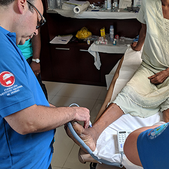 The most common wounds in Haiti are venous ulcers, diabetic foot ulcers and burn injuries. The typical treatment plan for these is to use iodopovidone as an antiseptic, but that can cause skin problems. And, until now, the wound care protocols also have not included cleansing.